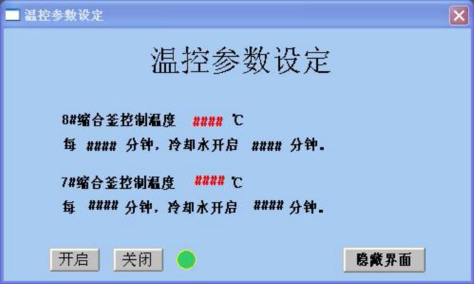 7. 溫度控制:操作員根據操作工藝設定好控制溫度,并根據現場實際溫度控制情況設定控制時間,點選開啟,指示燈亮進入溫控自動流程。