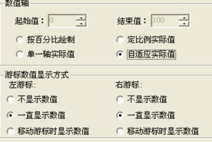 點選歷史數據曲線按鈕進入歷史數據曲線畫面,點選設置屬性頁按鈕進入選擇歷史庫中添加選擇所需觀察的曲線點選,鼠標左鍵點住右邊顏色選擇按鈕選擇曲線顏色以便于觀察。點選設置參數按鈕進入時間選擇界面,選擇所要觀察的曲線的起止時間數值軸及游標值按下圖設置,點擊確認,則曲線直觀的反應在歷史曲線畫面中,點選畫面XY 軸游標能顯示對應時間相應變量的相應值。